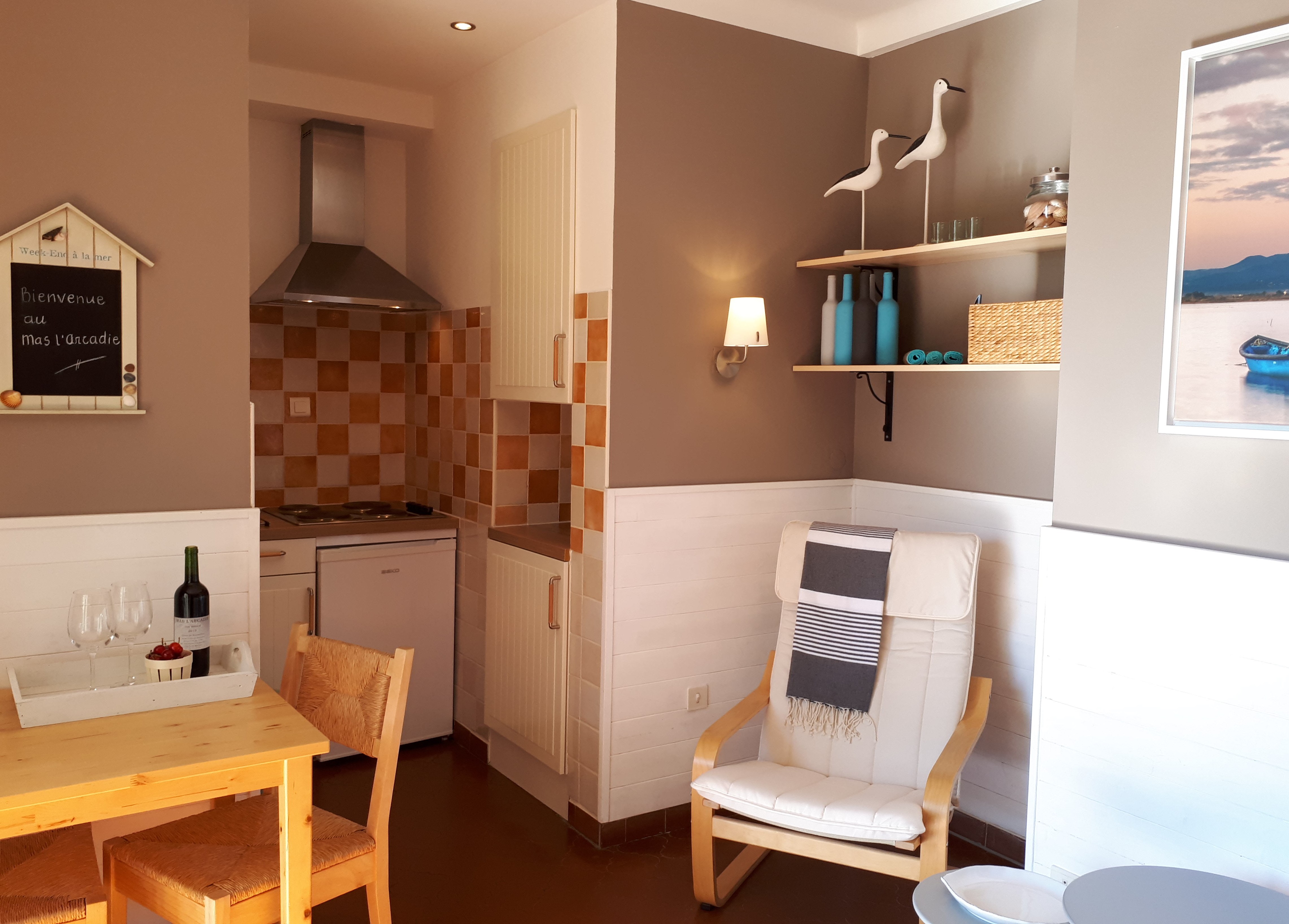 Naast het privé-gedeelte heeft Mas l’Arcadie twee vakantiewoningen. De vakantiewoningen, beide geschikt voor 2 personen, hebben via grote terrasdeuren een eigen entree met privé terras en zijn direct gelegen op de begane grond aan de tuin met zwembad (10 x 5 m).