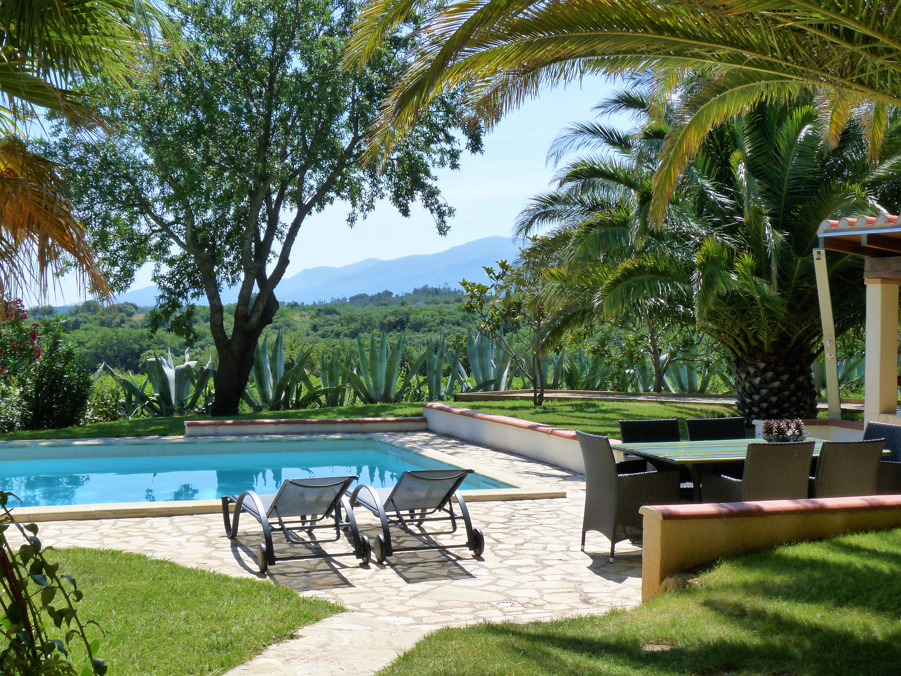 In de ruim aangelegde mediterrane tuin met palmbomen, druivenstruiken en fruitbomen vindt u een zwembad, een tennisbaan en een jeu-de-boules baan. Bij het zwembad is een zonneterras met ligbedden en een zomerkeuken met barbecue.